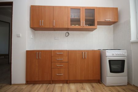 Vybavená kuchyně - sporák s troubou, lednice s mrazákem, mikrovlnka, varná konvice